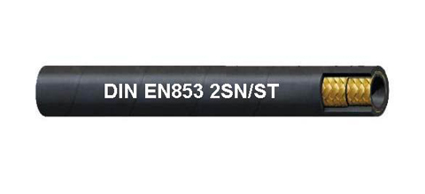 Tubo flessibile idraulico con rivestimento in gomma rinforzato con filo d'acciaio DIN EN 853 2SN/2ST. Questo tubo flessibile deve essere costituito da un tubo interno in gomma sintetica resistente all'olio